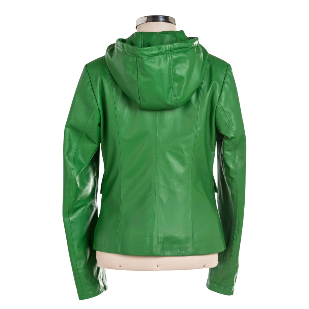 Add a vibrant pop of color to your outerwear collection with our Women’s “Emerald Urban” Hooded Leather Jacket. Crafted from supple genuine leather in a striking emerald green hue, this jacket combines a classic hooded design with modern, functional details. Perfect for adding a fresh, energetic touch to your casual ensemble, it’s designed for the woman who values both individual style and everyday comfort.