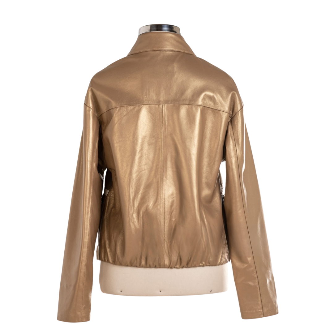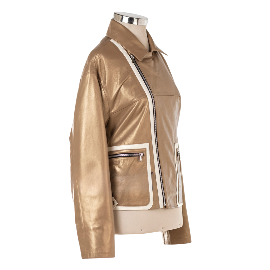 Women’s Radiant Aura Metallic Leather Bomber Jacket | Luxe Gold & White